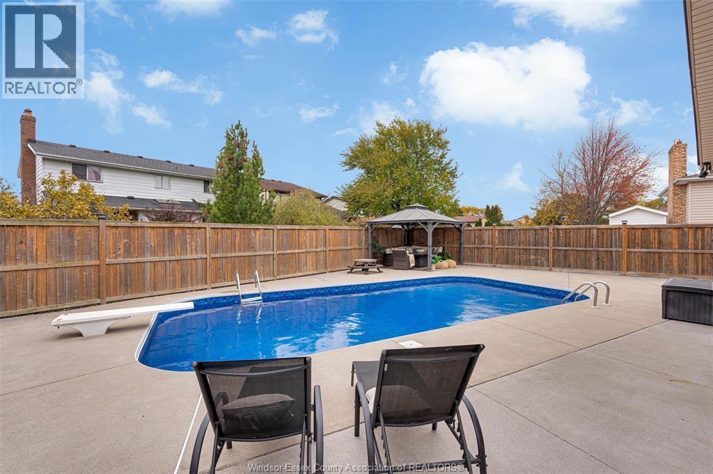 Welcome to 673 Gauthier, a beautifully updated 2-storey home in desirable Tecumseh! This move-in-ready property features 3 bedrooms, 4 bathrooms, and a fully finished basement—perfect for families. The main floor renovation (2025) showcases new vinyl flooring and a bright white kitchen with quartz countertops, island seating, and plenty of storage. The open layout flows into a spacious dining area and a bright family room with vaulted ceilings and a gas fireplace, plus a versatile bonus room ideal for an office or playroom. Step outside to your private backyard oasis with a cement patio and in-ground heated pool—ideal for relaxing or entertaining. Pool updates include pump and filter (2022), heater and liner (2020), and fence (2018). Upstairs offers a primary suite with walk-in closet and renovated ensuite (2020), two additional bedrooms, full bath, and convenient upstairs laundry. The finished basement adds a large rec room, updated half bath, and extra office/play area. Additional updates include a heated/cooled 2.5-car garage with epoxy floors (2023),newer windows (2017), roof (2011), furnace, A/C & hot water tank (2023), and front door & landscaping (2019). Beautifully updated, well-maintained, and ready for you to move in and enjoy! (id:4555)